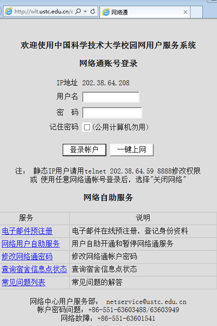 网络通账号登陆地址http://wlt.ustc.edu.cn,登录后页面如下: