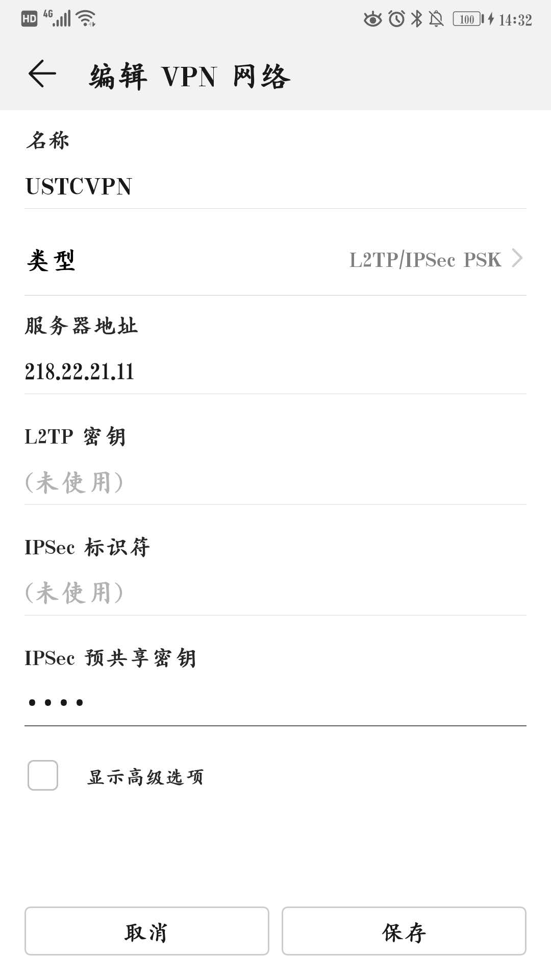 预共享密钥:ustc