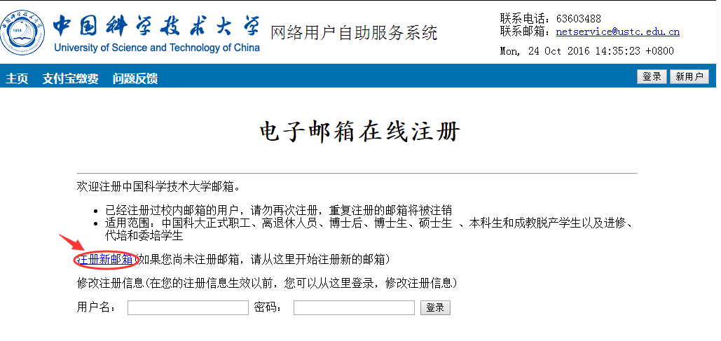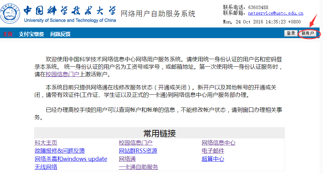 校园网新用户请先在点击http://ustcnet.ustc.edu.cn/service点击“新用户”