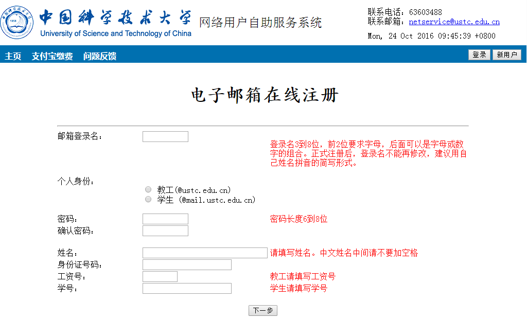 中国科大Email账户是校园网基本账户,开通email后才能办理其它业务。Email账户一旦开通即不可更改,请用户慎重取名。Email终身免费使用,离校不销。