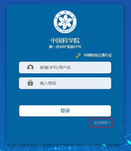点击“点击登录新一代ARP系统”之后,如下图,请点击右下角“忘记密码”